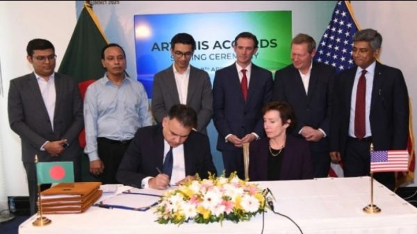 ৫৪তম দেশ হিসেবে যুক্তরাষ্ট্রের মহাকাশ গবেষণা সংস্থা নাসার আর্টেমিস অ্যাকর্ডের সঙ্গে যুক্ত হয়েছে বাংলাদেশ। আজ মঙ্গলবার (৮ এপ্রিল) রাজধানীর ইন্টারকন্টিনেন্টাল হোটেলে বাংলাদেশ বিনিয়োগ সম্মেলন-২০২৫ এর সাইডলাইনে এ সংক্রান্ত একটি চুক্তি