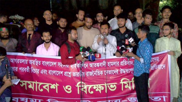 শেখ হাসিনাকে ভারত থেকে ফিরিয়ে এনে দেশে বিচারের মুখোমুখি করলে সকল ভারতীয় ষড়যন্ত্র নস্যাৎ হবে বলে মন্তব্য করেছেন ছাত্রনেতারা। বুধবার (৪ ডিসেম্বর) ঢাকা বিশ্ববিদ্যালয়ের রাজু ভাস্কর্যে ছাত্র-জনতার এক বিক্ষোভ সমাবেশে