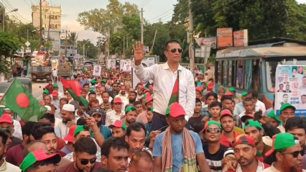 স্টাফ রিপোর্টার-মো রুহুল আমিন(আলামিন) জুলাই গণঅভ্যুত্থানের প্রথম বর্ষপূর্তি উপলক্ষে ঢাকায় বিএনপির বিজয় র্যালিতে কয়েক শত নেতাকর্মী নিয়ে অংশ নিয়েছেন, ঢাকা জেলা বিএনপি সাবেক যুগ্ম সম্পাদক লায়ন মোঃ খোরশেদ । বুধবার