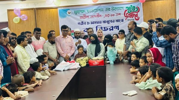মুহাম্মদ ফাউন্ডেশনের পরিচালক যায়ীমা তাসনীম’র জন্মদিনে ফাউন্ডেশনের উদ্যেগে অসহায় শিশুদের মাঝে বস্ত্র ও নগদ অর্থ বিতরণ করা হয়েছে। ১২ মে সোমবার বিকেলে রাজধানীর উত্তরা ১১ নং সেক্টর কল্যাণ সমিতির