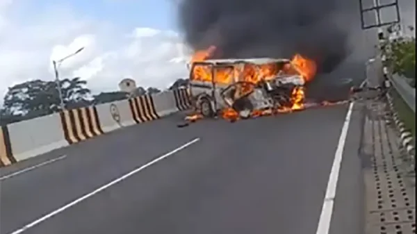 ভাঙায় এক্সপ্রেসওয়েতে এম্বুলেন্সের সিলিন্ডার বিস্ফোরণ, রোগীসহ ৭ যাত্রী পুড়ে ছাই ফরিদপুরের ভাঙায় ঢাকা-মাওয়া এক্সপ্রেসওয়েতে একটি রোগীবাহী এম্বুলেন্সের গ্যাস সিলিন্ডার বিস্ফোরণের ঘটনা ঘটেছে। এতে আগুনে পুড়ে ছাই হয়ে গেছেন রোগীসহ ৪